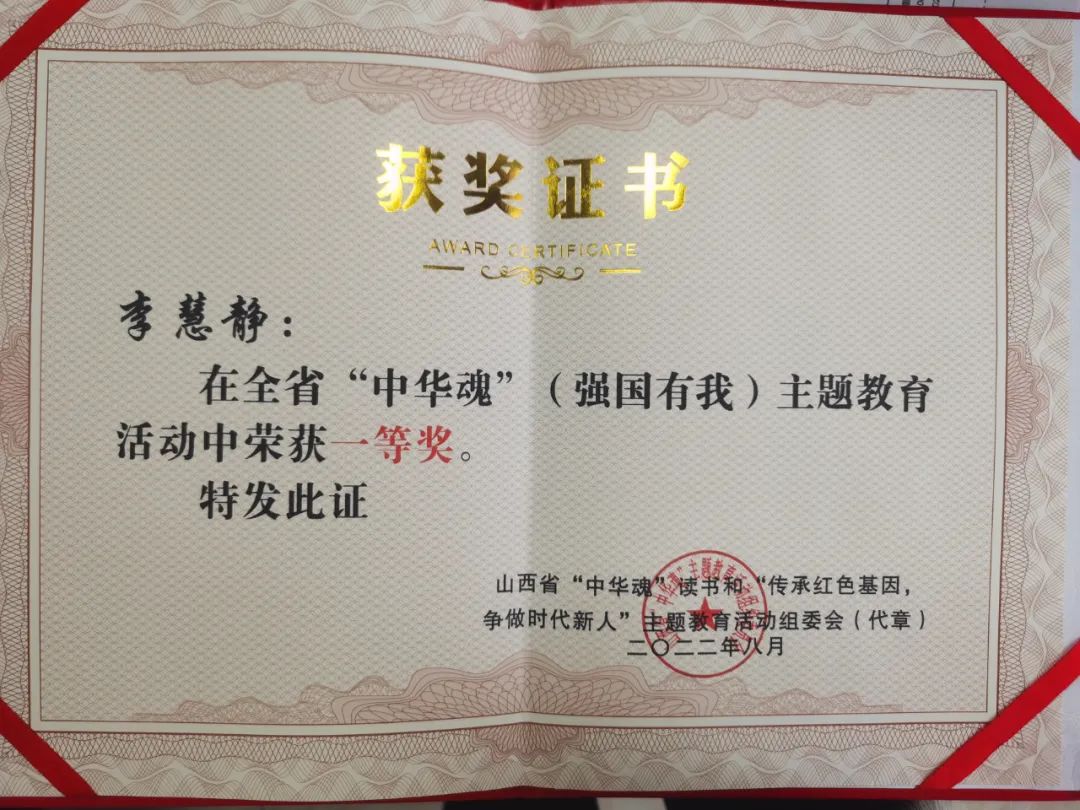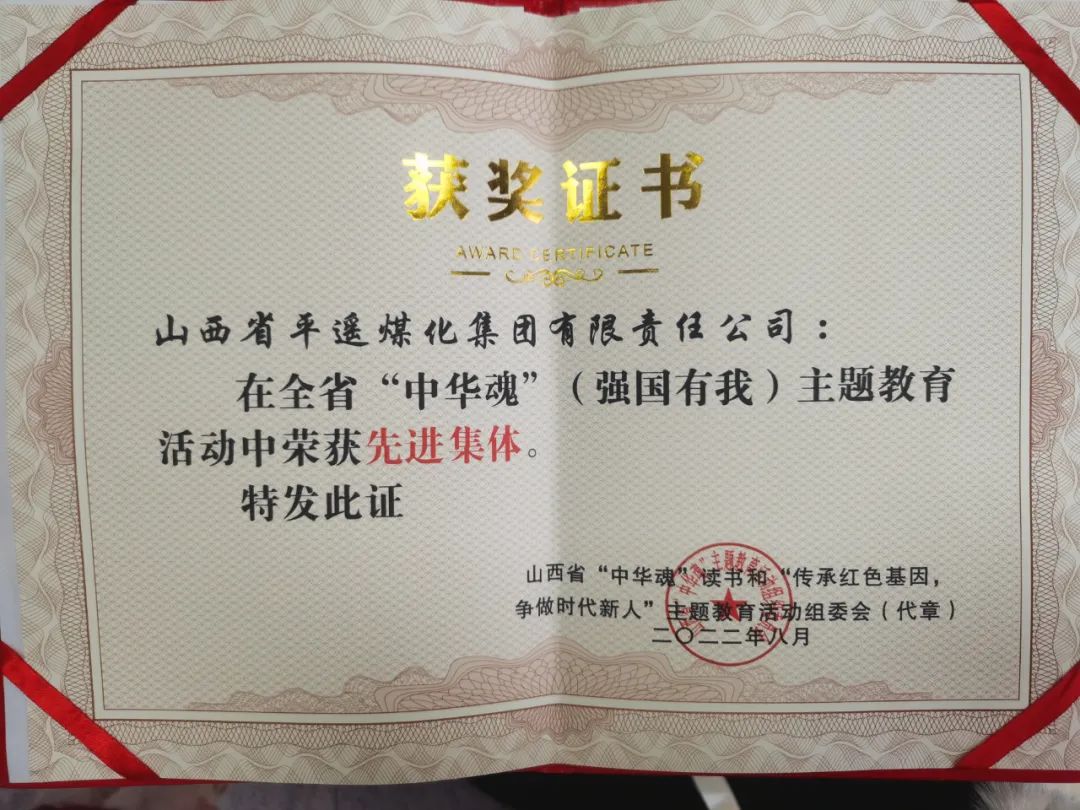 2022年8月,“中華魂”(強國有我)主題教育活動圓滿結束,集團公司員工踴躍報名參加此次活動并榮獲佳績。 其中平遙煤化集團在全省“中華魂”(強國有我)主題教育活動中榮獲先進集體榮譽稱號; 唐都公司張琪在全國“中華魂”(強國有我)主題教育活動中榮獲一等獎,同時在2021年全市“中華魂”演講比賽中榮獲一等獎; 集團公司李慧靜在全省“中華魂”(強國有我)主題教育活動中榮獲一等獎; 集團選煤廠王利棟在全國“中華魂”(強國有我)主題教育活動中榮獲二等獎。 通過此次演講及征文活動,展示了煤化良好的企業(yè)形象和青年職工積極向上的精神風貌,同時也激發(fā)了廣大煤化青年的愛國之情、愛國之志,增強了煤化青年的責任與擔當。 集團公司:冀建政
